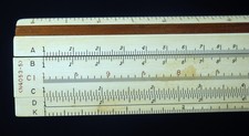 Vtg 20" Keuffel + Esser N4053-5 Polyphase Slide Rule w/ Wood Base + Leather Case