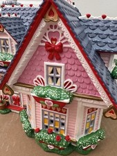The VTG 2002 Department 56 Snow Village Hearts And Blooms Cottage House is a traditional style ceramic and porcelain house in the shape of a heart, perfect for any room during Valentine's Day. This retired piece from the 21st century showcases a pink color and features a cottage design, making it a charming addition to any holiday or seasonal decor collection. Made by Department 56, this collectible piece embodies the theme of love and sweethearts, ideal for adults looking to add a touch of romance to their furniture or display shelf.