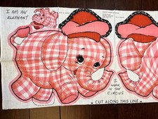 VTG 60s Pink Gingham Circus ELEPHANT 14 X 15 Fabric Panel Doll Pillow Cut n Sew