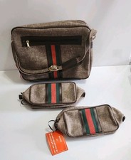 VTG 70S 80S CANVAS STRIPE TRAVEL CARRY ON TOTE BAG THREE PIECE SET