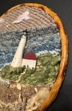 Vtg 80s Lighthouse Shell Mixed Media Artwork Nautical Beach Wool Yarn Shell