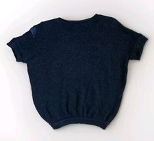 Vtg 80s Short Sleeve Black Sweater Leather/Suede/Sequence Flower Applique Red