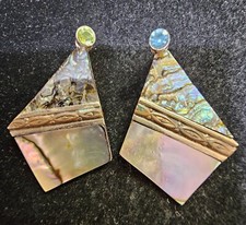 vtg Alpaca Mexico Silvertone Stud Earrings w/ Abalone Inlay- S88- READ additional preview