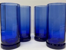 Vtg Anchor Hocking Cobalt Blue 10 Panel Essex Tall 16 Oz Tumbler Glasses Set 4