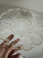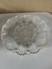 VTG Anchor hocking Deviled Egg Dish In A Shell Pattern 12 Eggs 10" Glass Plate