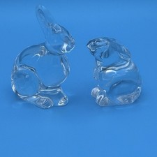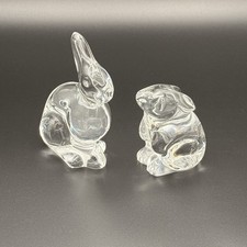 VTG Baccarat France Crystal Bunny Rabbit Figurines Signed Pair *Mint* Easter
