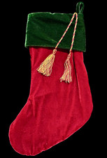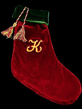Vtg Bed Bath Beyond Christmas Stocking Velvet Green Red Tassels Gold Monogram K