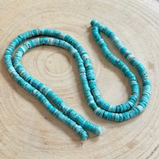 VTG Blue turquoise loose beads Heishi Native American 2 strands 15" 56g Natural measures Each strand is 15.25 in L beads are about 6.3 mm THE BEADS THAT YOU SEE IN THE PICTURES IS WHAT YOU GET FEEL FREE TO ZOOM IN these are natural beads with natural inclusions I received a collection of beads from an estate that had allot of Navajo jewelry and Paintings from New Mexico I will be listing small lots for the next few days Fine genuine beads real turquoise beads LETS MAKE A DEAL SEND US AN OFFER We will consider any reasonable offers questions welcomed