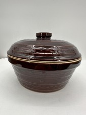 Vtg Brown Marcrest Daisy Dot Ovenproof Stoneware Dutch Oven with Lid 7” x 9 7/8”. 8483