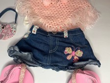 Vtg Build A Bear Pink Glam Outfit Set Poncho Sandal Denim Skirt Purse Y2K Summer