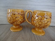 VTG Harvest Gold Brown Floral Pedestal Coffee Tea Cup Pair 70s 80s Retro Kitchen