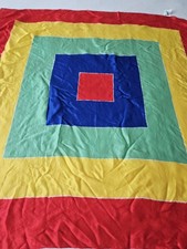 Vtg Jacqueline Ferrar Silk Primary Colors Rainbow Colorblock Clowncore Square Scarf. 28x28. Very good condition but does have very light bleeding of red color onto the yellow and green (was hard to pick up on camera). See pics for details.