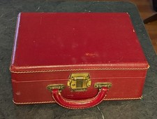 Vtg LUCE Suitcase Cosmetic Travel Case Red Mirror 1930s - 50s Vanity 9" x 12"