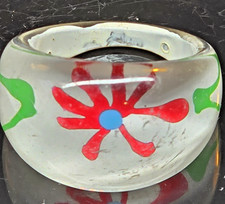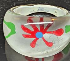 VTG LUCITE PLASTIC RING WITH EMBEDDED FLOWER DESIGN SIZE 9
