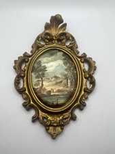 This beautiful vintage frame set is perfect for displaying your cherished memories. The ornate gold painted plastic frame is adorned with padded fabric pictures, giving it a unique and elegant look. The frame is in excellent condition, with no visible wear or damage, and is ready to be hung on your wall. The frame measures 9 inches in height and 6 inches in width, making it perfect for displaying your favorite landscape pictures. The frame is an original piece, and is labeled as being made in Hong Kong. This frame is perfect for all occasions, and will make a great addition to any collection. Some small spots on one picture. See pics.
