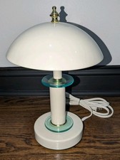 Vtg MCM 12" Touch-On Atomic Table Lamp Flying Saucer UFO Mushroom White Emerald