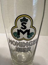 Vtg. Moninger Beer 12 oz. Glass Light vertical bevel design-Rare-Tiny chip