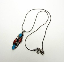 VTG Native American Sterling Silver Turquoise & Coral Pendant Belt Nir Necklace