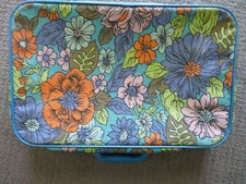 Vtg Peter's Bags Flower Power Floral Suitcase Luggage Canvas Carry On Turquoise