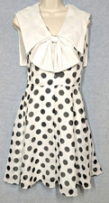 Lovely Very Vintage Black and White Large Polka Dot COCO California Midi Dress Size S/M with a Large Sailor Collar and Bow, 1/2 Covered Buttons Front, NO belt (easy fix straw would be great) Fit Flair, one hole in lining, See all measurements in Photos, Retro, Boho, Feminine Feel, Prairie, Trending