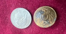 Vintage Prussian copper button for military uniforms. It has an embossed eagle figure with a crown on top & a shield in the center that has an eagle as well. Hard to find examples of this item. Mine is in fair condition in that most images are visible with the exception of the center which is worn. On back of button appears extra fein; it is a shank button. This item belonged to my grandfather.