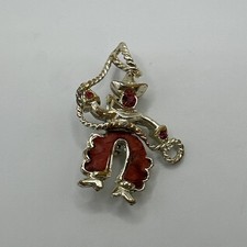 Faded gold tone metal with wear sold as is. Red rhinestone face.