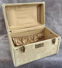This Samsonite Streamlite Train Case (style 4512) has the Cream Marble color. An original key is included! No mirror or tray. Latches, hinges and lock work as they should.