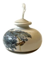 Beautifully designed mini oil lamp with wick - never used. There is a chip on the lid as photographed. Measurements are 3”H x 3.5” largest diameter. Signed by the artist. Please let us know if you have any questions, from smoke free household. Ships the next business day. It will be packed with care. Please follow our store for more awesome vintage collection. Thank you very much!