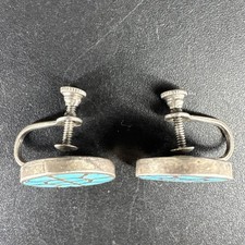 Vtg Sterling Silver Zuni Inlay Turquoise Channel Set Screw back Earrings