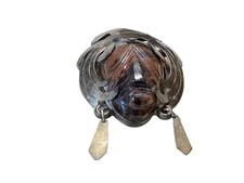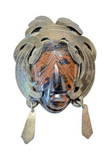 Vtg Taxco sterling silver carved Mahogany Obsidian Aztec Warrior brooch pendant