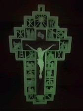Vtg Wall Plastic Wood Stations Of The Cross Crucifix Jesus Italy Glows In Dark