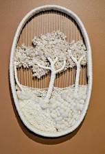 Vtg Woven Fiber Art White Tree of Life Oval Wall Hanging Boho 12" x 20" Weaving