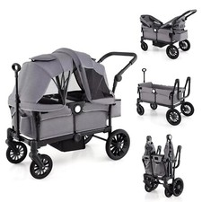 Wagon Stroller for 2 Kids, Push Pull Double Stroller with Adjustable Handle