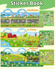 Portable Design: Sticker books for toddler portable with handle and storage for stickers, can be used on smooth surfaces like windows, water bottles, and more.