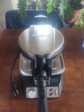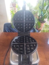 The Waring Pro Belgian Waffle Maker is a restaurant-style 360 flip waffle maker that comes with a drip tray. It is designed with a round shape and made of stainless steel. The waffle maker has a capacity for one waffle and operates on an electric power source with a voltage of 120V. The unit includes a base and has a cable length of 60 inches, making it convenient for use in any kitchen setting. With its sleek silver color and high-quality construction, this waffle maker from Waring Pro is a top-of-the-line addition to any home breakfast routine. clean and works great