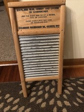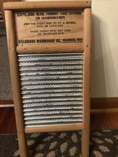 The Washboard Dubi Handi is a brand new old stock antique piece made of wood. This original washboard is a unique and authentic piece that harkens back to a bygone era. Its sturdy construction and traditional design make it a perfect addition to any antique or primitive collection. Ideal for those with a love for historical artifacts and primitive decor, this washboard is sure to add a touch of nostalgia to any home.