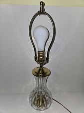 Waterford Lismore table lamp. 22 inches tall and 5 inches wide. Crystal is in fabulous condition. The brass needs to be cleaned. This lamp was purchased in 1984 and has a one way switch, everything is original on this lamp - including brass harp and finial. No shade for this item.