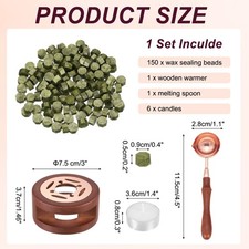 [Versatile & Delicate Crafting]The wax seal kit is a great tool for creating elegant and personalized wax seals. Widely used in various DIY art craft projects, suitable for invitations, envelopes, wedding cards, love letters, banquet invitations, gift decorations, scrapbooks, wine stamps, etc. Add a touch of elegance to your handicraft projects.[Wax Sealing Craft Set]Includes 150 wax sealing beads, 1 wooden warmer, 1 melting spoon, and 6 candles, meeting your DIY needs. The size of the warmer is 7.5 x 3.7cm/ 3 x 1.5 inch (Dia x H), the spoon is 11.5 x 2.8cm/ 4.5 x 1.1 inch (LxW), the candle is 3.6 x 0.8cm / 1.4 x 0.3 inch (Dia x H), the wax bead is 0.9 x 0.5cm / 0.4 x 0.2 inch (WxH).[Excellent Crafting Tools]The temperature of the wax seal warmer is stable, making it easier to make a good wax seal.