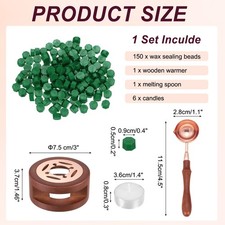 [Versatile & Delicate Crafting]The wax seal kit is a great tool for creating elegant and personalized wax seals. Widely used in various DIY art craft projects, suitable for invitations, envelopes, wedding cards, love letters, banquet invitations, gift decorations, scrapbooks, wine stamps, etc. Add a touch of elegance to your handicraft projects.[Wax Sealing Craft Set]Includes 150 wax sealing beads, 1 wooden warmer, 1 melting spoon, and 6 candles, meeting your DIY needs. The size of the warmer is 7.5 x 3.7cm/ 3 x 1.5 inch (Dia x H), the spoon is 11.5 x 2.8cm/ 4.5 x 1.1 inch (LxW), the candle is 3.6 x 0.8cm / 1.4 x 0.3 inch (Dia x H), the wax bead is 0.9 x 0.5cm / 0.4 x 0.2 inch (WxH).[Excellent Crafting Tools]The temperature of the wax seal warmer is stable, making it easier to make a good wax seal.