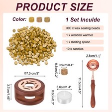 [Versatile & Delicate Crafting]The wax seal kit is a great tool for creating elegant and personalized wax seals. Widely used in various DIY art craft projects, suitable for invitations, envelopes, wedding cards, love letters, banquet invitations, gift decorations, scrapbooks, wine stamps, etc. Add a touch of elegance to your handicraft projects.[Wax Sealing Craft Set]Includes 300 wax sealing beads, 1 wooden warmer, 1 melting spoon, and 10 candles, meeting your DIY needs. The size of the warmer is 7.5 x 3.7cm/ 3 x 1.5 inch (Dia x H), the spoon is 11.5 x 2.8cm/ 4.5 x 1.1 inch (LxW), the candle is 3.6 x 0.8cm / 1.4 x 0.3 inch (Dia x H), the wax bead is 0.9 x 0.5cm / 0.4 x 0.2 inch (WxH).[Excellent Crafting Tools]The temperature of the wax seal warmer is stable, making it easier to make a good wax seal.