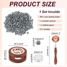 [Versatile & Delicate Crafting]The wax seal kit is a great tool for creating elegant and personalized wax seals. Widely used in various DIY art craft projects, suitable for invitations, envelopes, wedding cards, love letters, banquet invitations, gift decorations, scrapbooks, wine stamps, etc. Add a touch of elegance to your handicraft projects.[Wax Sealing Craft Set]Includes 300 wax sealing beads, 1 wooden warmer, 1 melting spoon, and 10 candles, meeting your DIY needs. The size of the warmer is 7.5 x 3.7cm/ 3 x 1.5 inch (Dia x H), the spoon is 11.5 x 2.8cm/ 4.5 x 1.1 inch (LxW), the candle is 3.6 x 0.8cm / 1.4 x 0.3 inch (Dia x H), the wax bead is 0.9 x 0.5cm / 0.4 x 0.2 inch (WxH).[Excellent Crafting Tools]The temperature of the wax seal warmer is stable, making it easier to make a good wax seal.