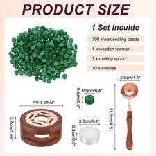 [Versatile & Delicate Crafting]The wax seal kit is a great tool for creating elegant and personalized wax seals. Widely used in various DIY art craft projects, suitable for invitations, envelopes, wedding cards, love letters, banquet invitations, gift decorations, scrapbooks, wine stamps, etc. Add a touch of elegance to your handicraft projects.[Wax Sealing Craft Set]Includes 300 wax sealing beads, 1 wooden warmer, 1 melting spoon, and 10 candles, meeting your DIY needs. The size of the warmer is 7.5 x 3.7cm/ 3 x 1.5 inch (Dia x H), the spoon is 11.5 x 2.8cm/ 4.5 x 1.1 inch (LxW), the candle is 3.6 x 0.8cm / 1.4 x 0.3 inch (Dia x H), the wax bead is 0.9 x 0.5cm / 0.4 x 0.2 inch (WxH).[Excellent Crafting Tools]The temperature of the wax seal warmer is stable, making it easier to make a good wax seal.