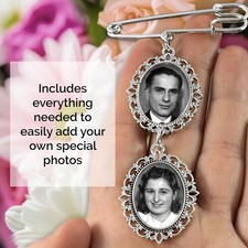 Wedding Bouquet Photo Charm Pin Cascading Double Oval Frame for Bride's Flowe...