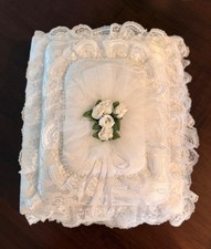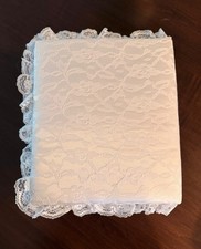 This is a handmade white lace 31 year old wedding memory book never used. Selling for a friend who is downsizing. It is in perfect condition.