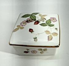 Wedgwood Wild Strawberry Bone China Trinket Box England 2” Square