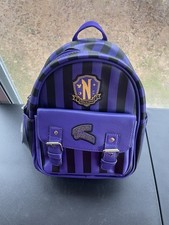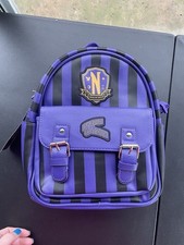 Wednesday Nevermore Academy Purple Striped Backpack MGM Faux Leather BNWT