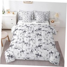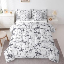 Western Comforter Set with Sheets Set King Size, White and Black Cowboy 7 Piece Bedding Set for Boys Girls Cowboy Bed in a Bag with Comforter, Sheets, Pillowcases & Cushion Cover. 7 Pieces Twin Bed in a Bag Set: 1 twin comforter 68"x 90", 2 standard pillowcases 20"x30", 1 twin fitted sheet 39"x75"x16", 1 flat sheet 66"x96", 2 cushion covers 18"x18".