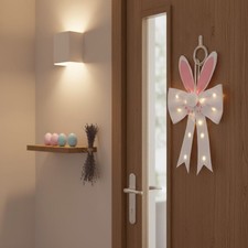 White Bunny Ears Hanging Decor with Soft LED Light for Easter 54cm Size