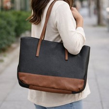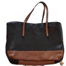 White Dove Designs Black and Brown Saffiano Faux Leather Wedge Bible Cover Bag. This stylish and functional carrier features a classic two-tone design with a cross-hatched Saffiano texture. Durable faux leather exterior with a zip-around closure to keep your Bible protected. Includes sturdy shoulder straps for easy transport and a unique wedge shape that provides a stable base. Perfect for church, Bible study, or travel. Excellent pre-owned condition with minimal signs of wear.