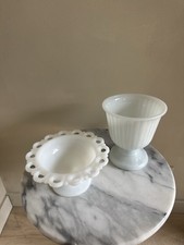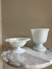 White Milk Glass Compote & Pedestal Bowls Set Decorative Scalloped Ribbed 5-6"